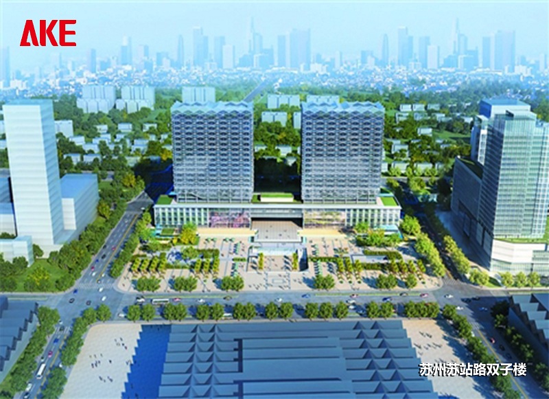 苏州苏站路双子楼项目建筑主体为两个塔楼,东西并行分列,建筑面积:14万 平方米地上20层,局部21层,地下2层,其中第三、四两层空中连廊相接。