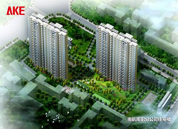 南航南阳分公司住宅楼位于南阳市人民北路南航基地院内,A楼建筑面积为28500平方米,B楼建筑面积为18766.11平方米,呈矩形状。地下一层,地上十八层,建筑高度为54.5米,建筑物总高度为59.6米。